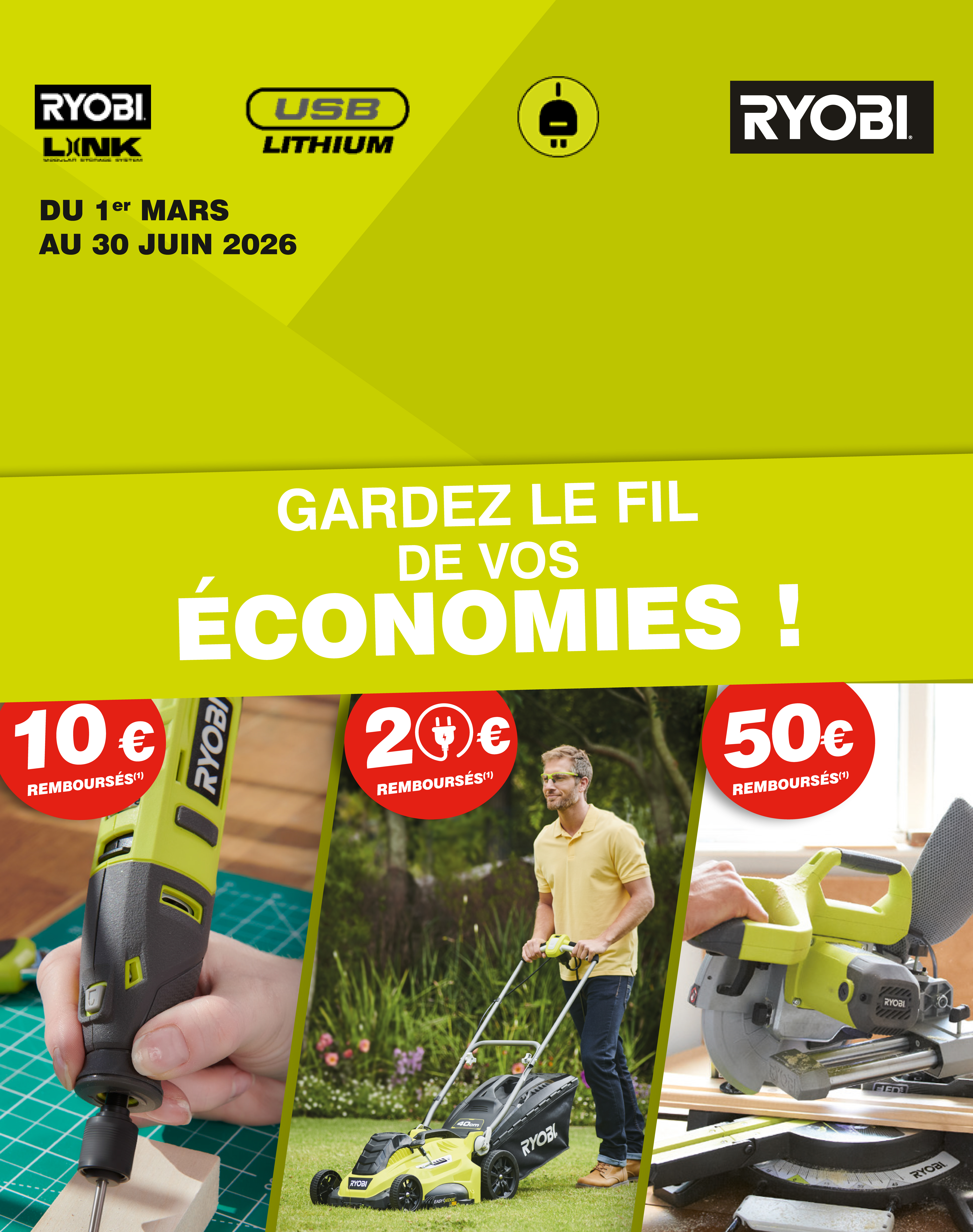 OFFRE RYOBI® PRINTEMPS 2026 _ Outillage et Jardinage Filaire 2026